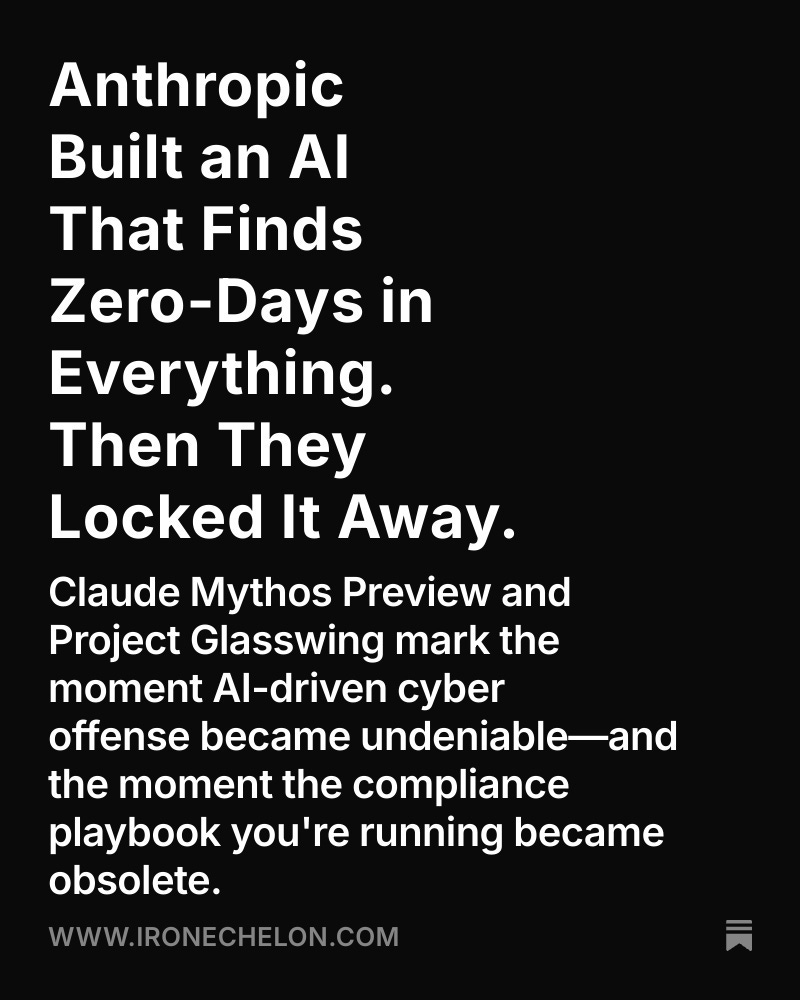 Claude Mythos Preview and Project Glasswing mark the moment AI-driven cyber offense became undeniable—and the moment the compliance playbook you're running became obsolete.