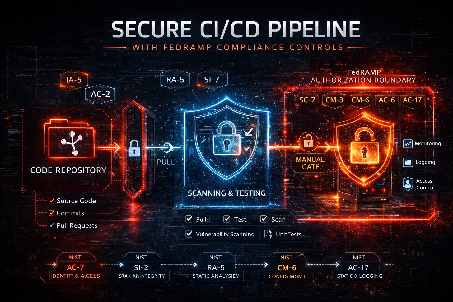 Your CI/CD pipeline isn’t just a DevOps convenience. In a FedRAMP Moderate environment, it’s a security-critical component that touches boundary protection, supply chain integrity, change management, access control, and continuous monitoring. Every stage has specific control obligations, and the connections between stages are where most compliance gaps hide.